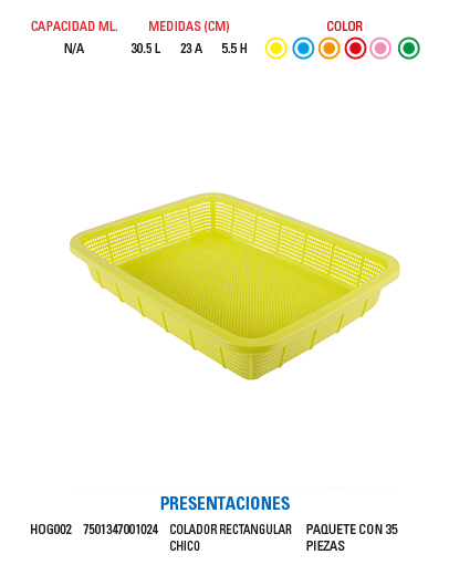 Colador Rectángular Chico, Mediano y Grande